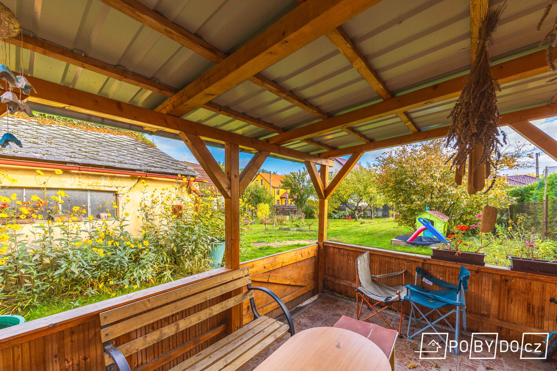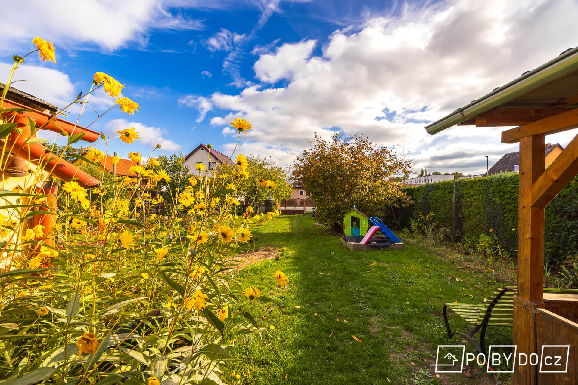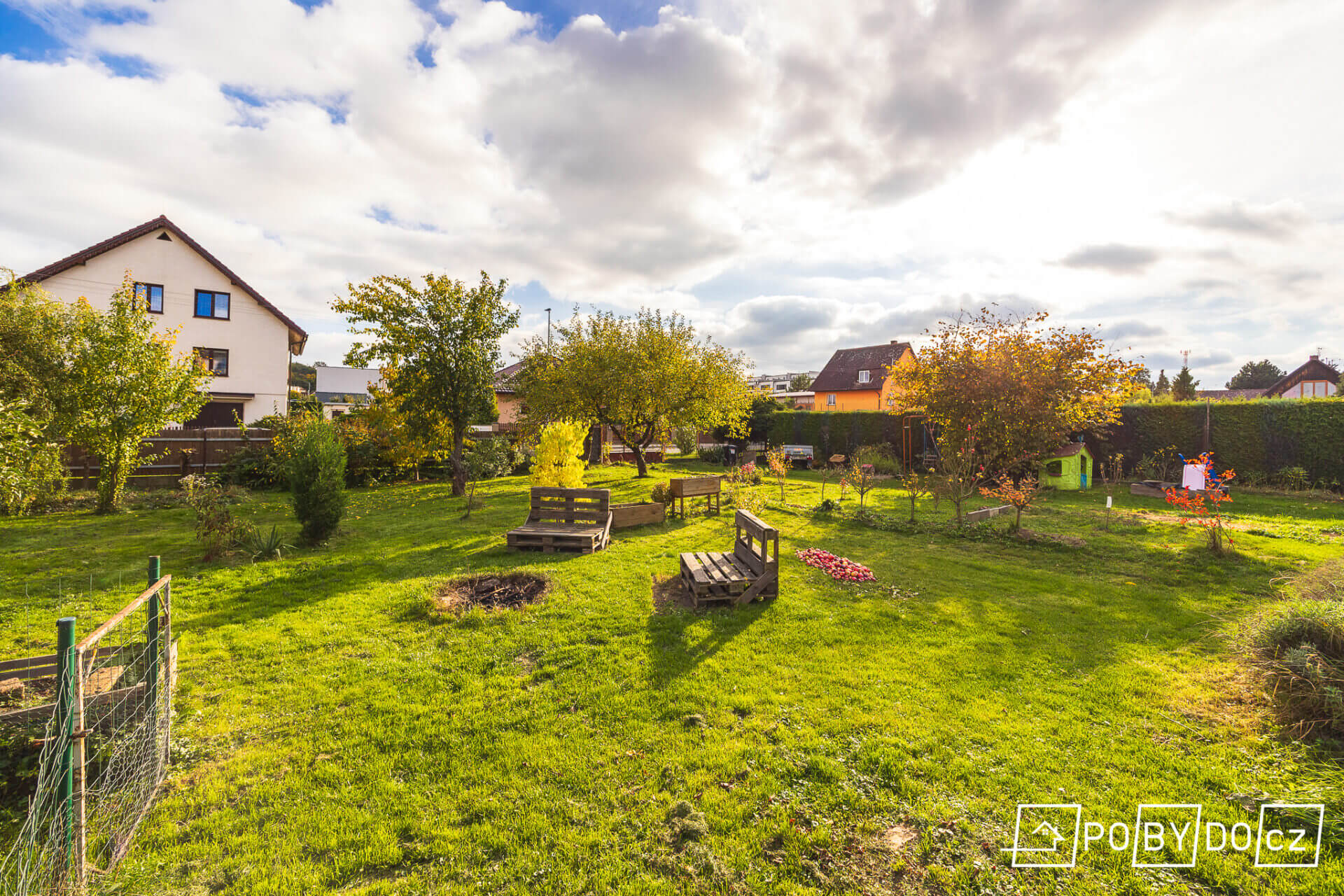 Na pozemek se lze dostat ze dvou stran, vstupem do domu, nebo vraty do zahrady. Svým obyvatelům poskytne dům i zahrada příjemné prostředí a dostatek soukromí. Doprava v místě je dobře zajištěna, dostupná je vlaková doprava, dálnice, silnice i autobusové spojení. V obci je také základní škola a školka.