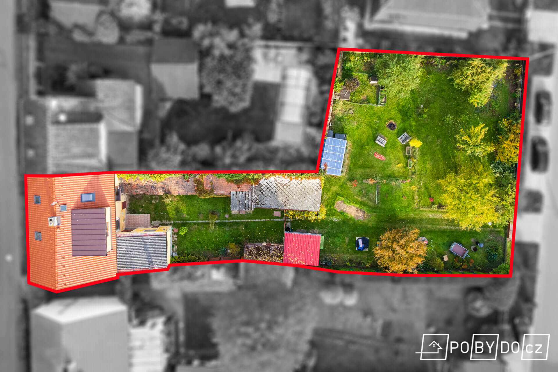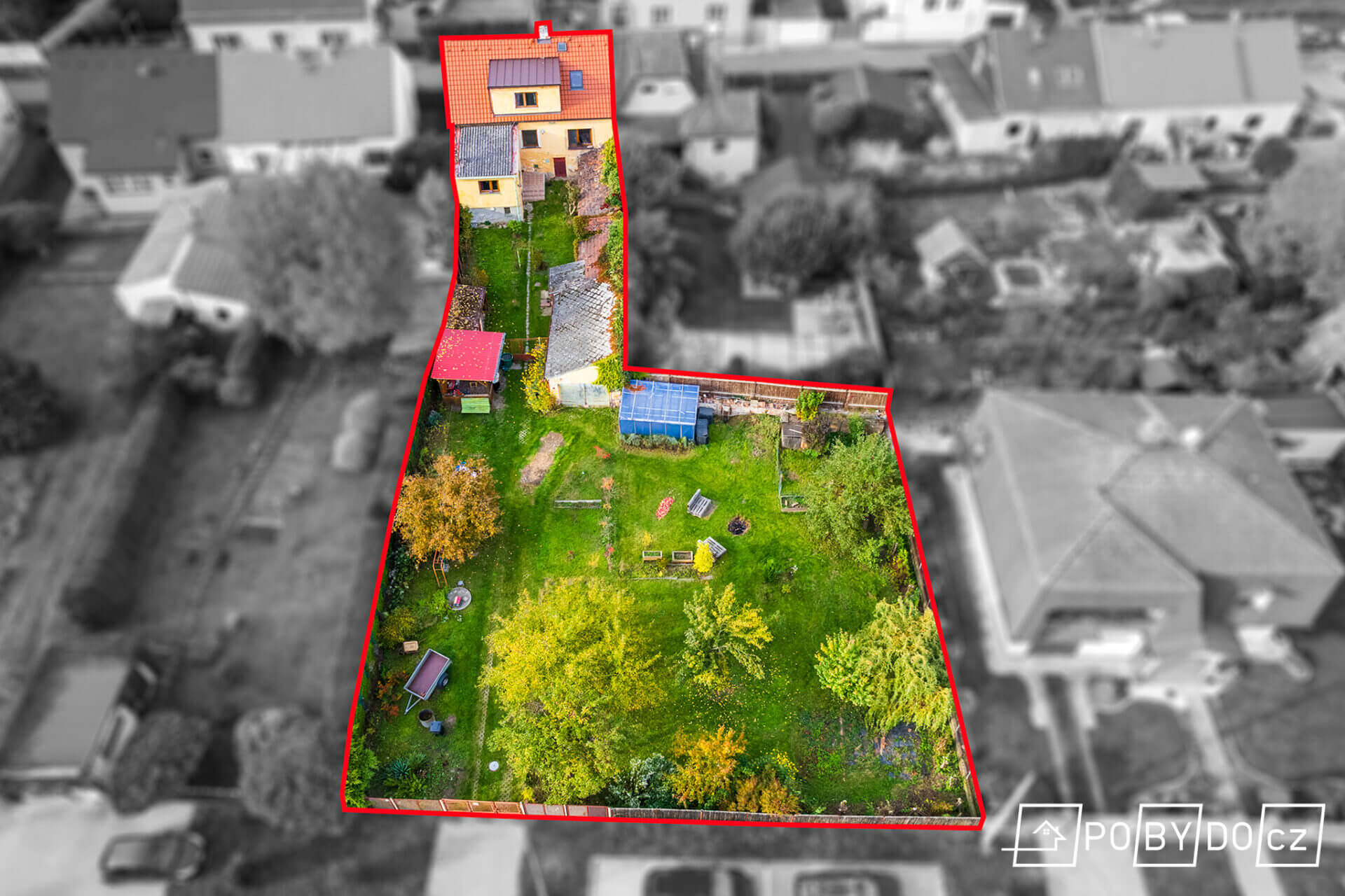 Pozemek 976 m2. Zastavěná plocha 330 m2. Zahrada 646 m2